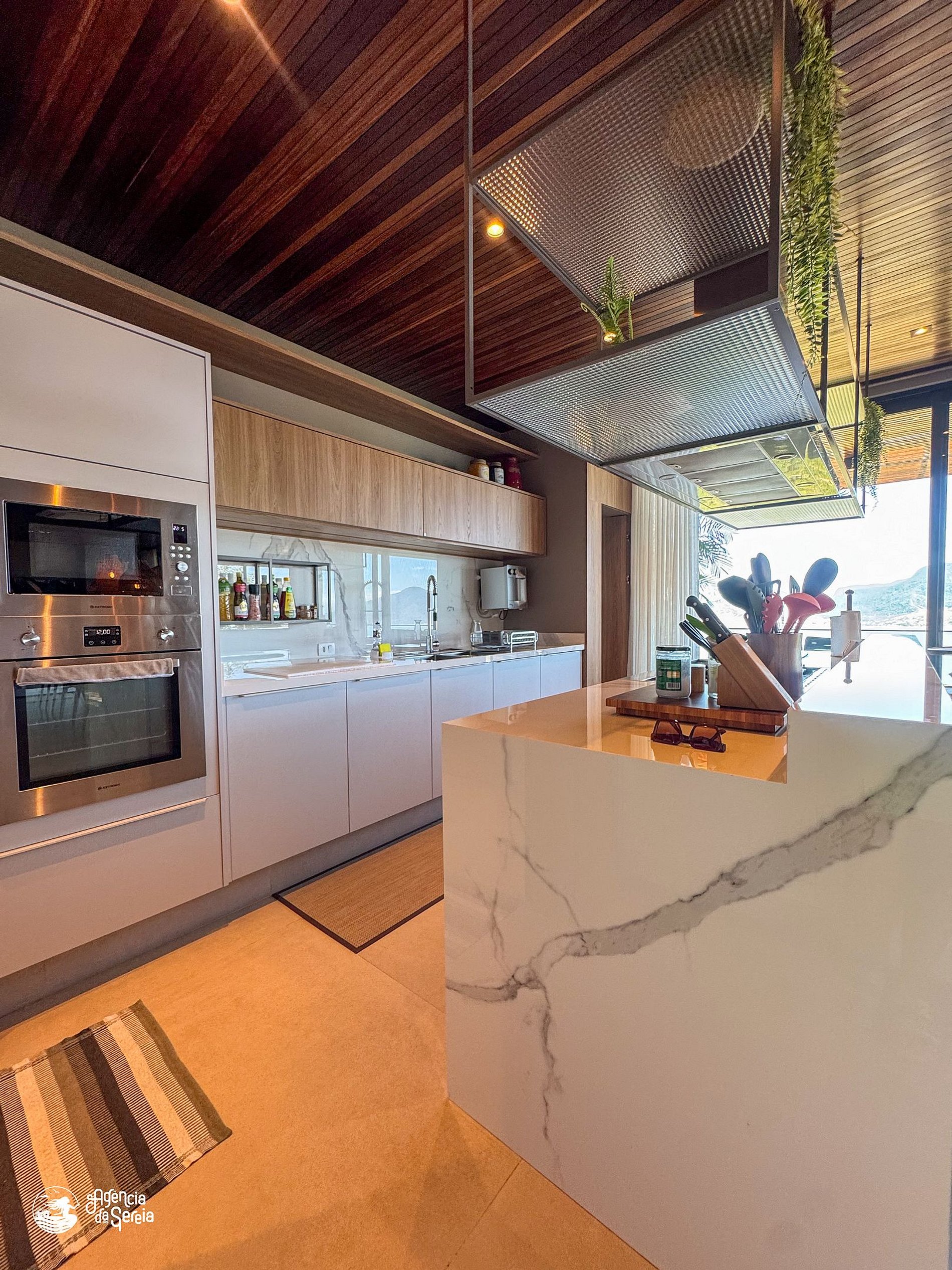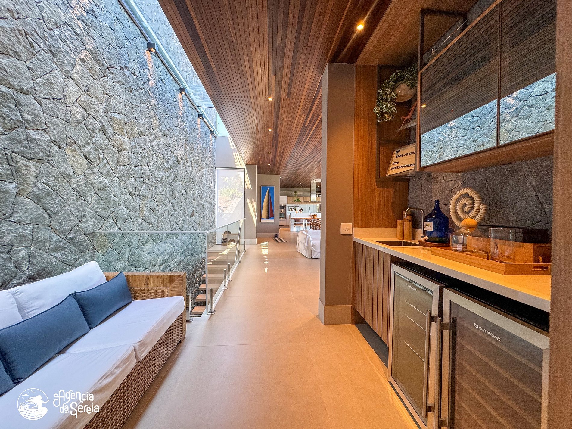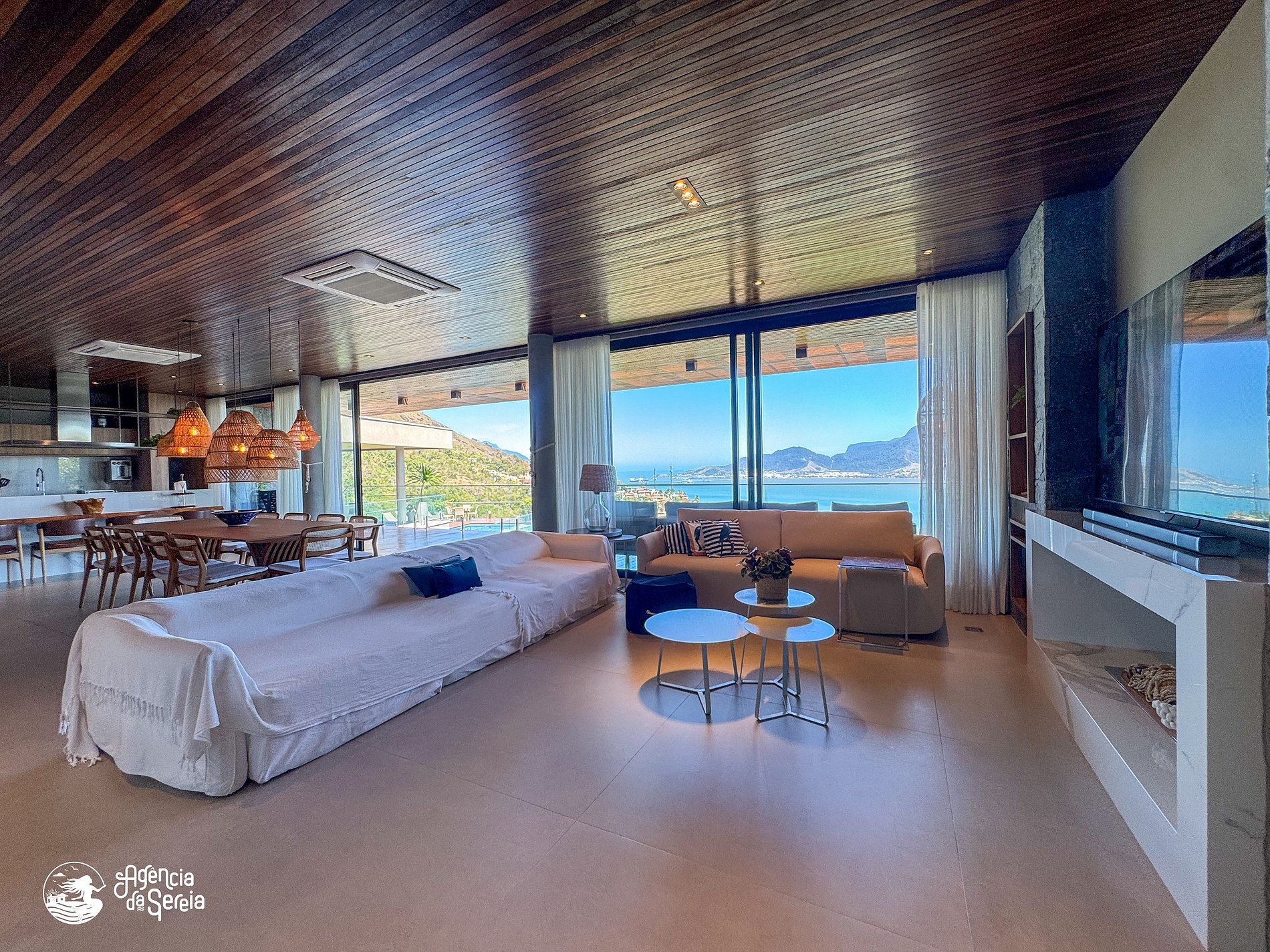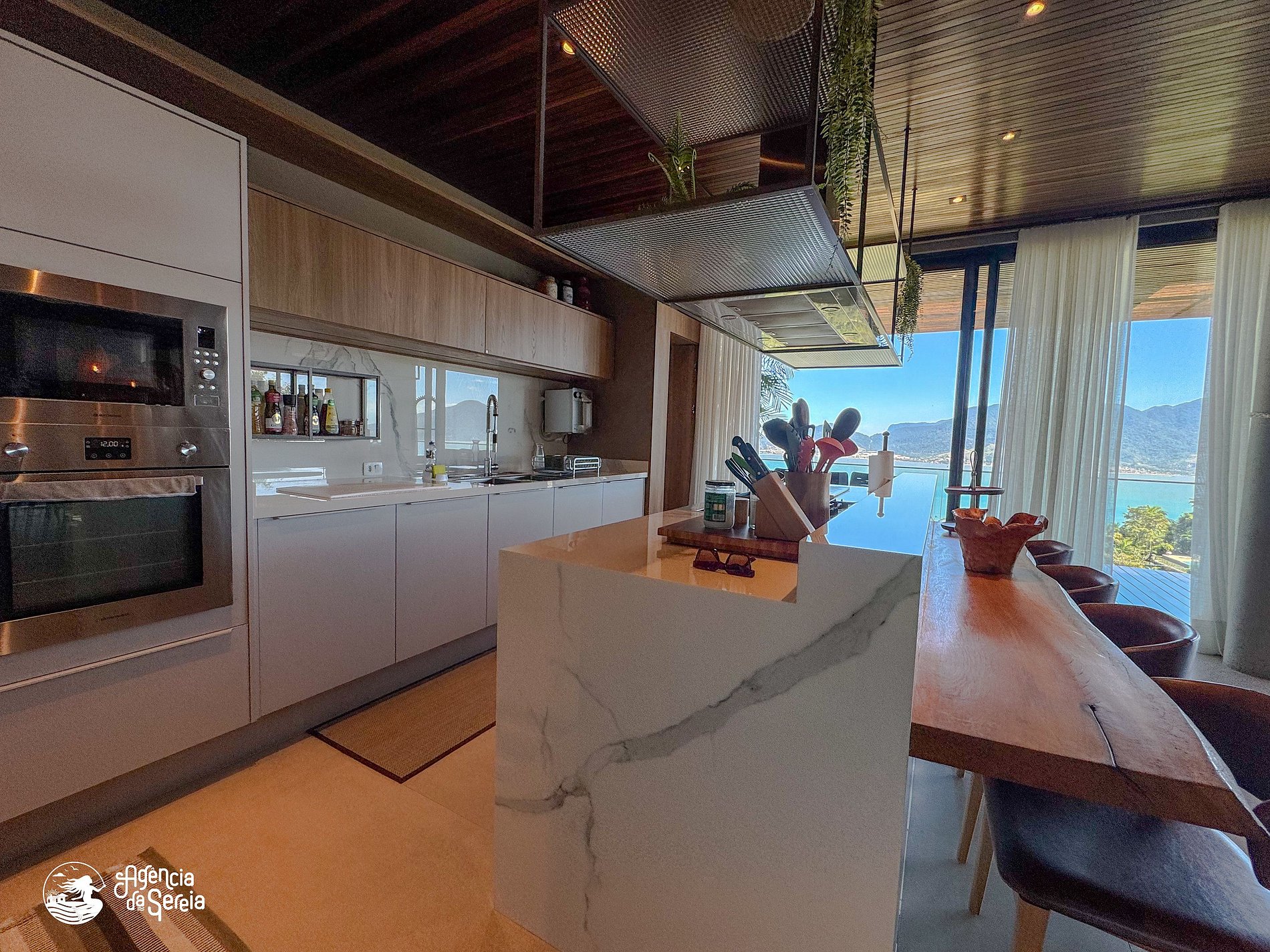 Projetada para integração total, a casa une ambientes sofisticados e aconchegantes: sala ampla com Smart TV de 75”, cozinha completa com eletros de ponta, bar com adega e cervejeira, além de lavanderia equipada. A área externa é um espetáculo: piscina de borda infinita aquecida, sauna, sinuca, espreguiçadeiras, e uma varanda gourmet com churrasqueira e forno de pizza. O cenário perfeito para reunir família e amigos, em que a maioria dos ambientes tem vista para o mar e para as montanhas - incluindo o famoso Pico do Baepi.