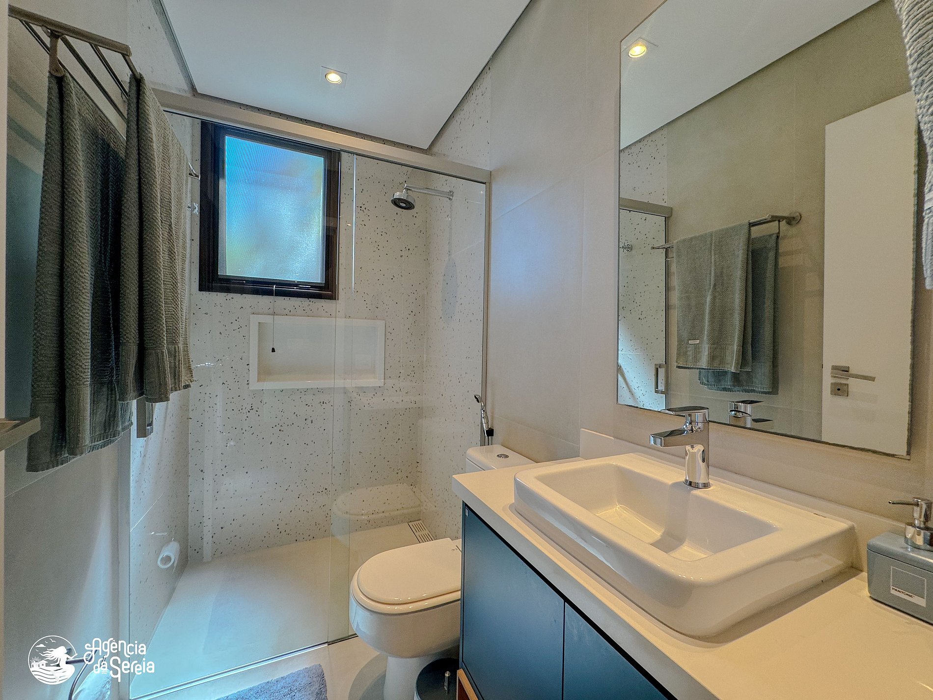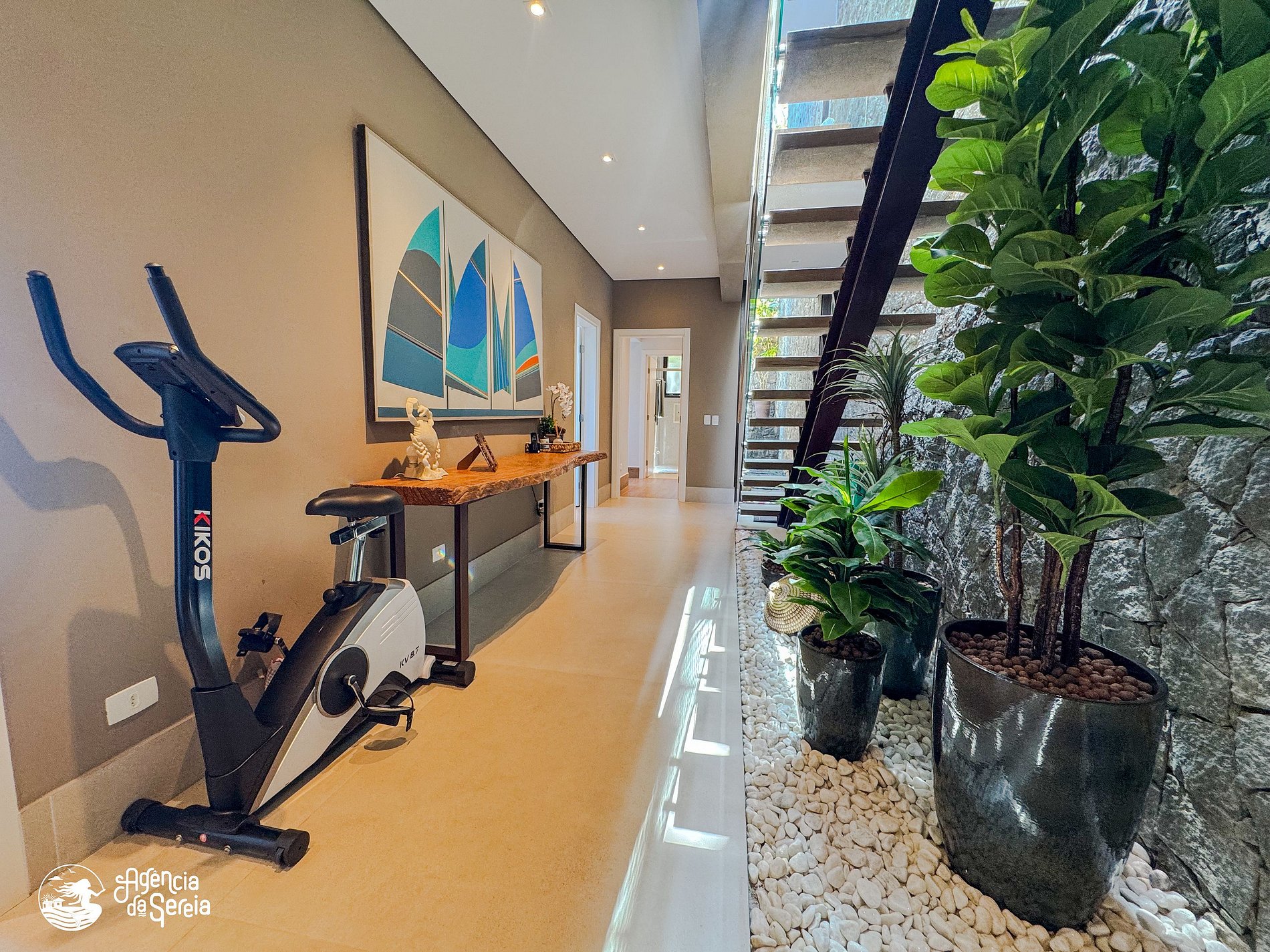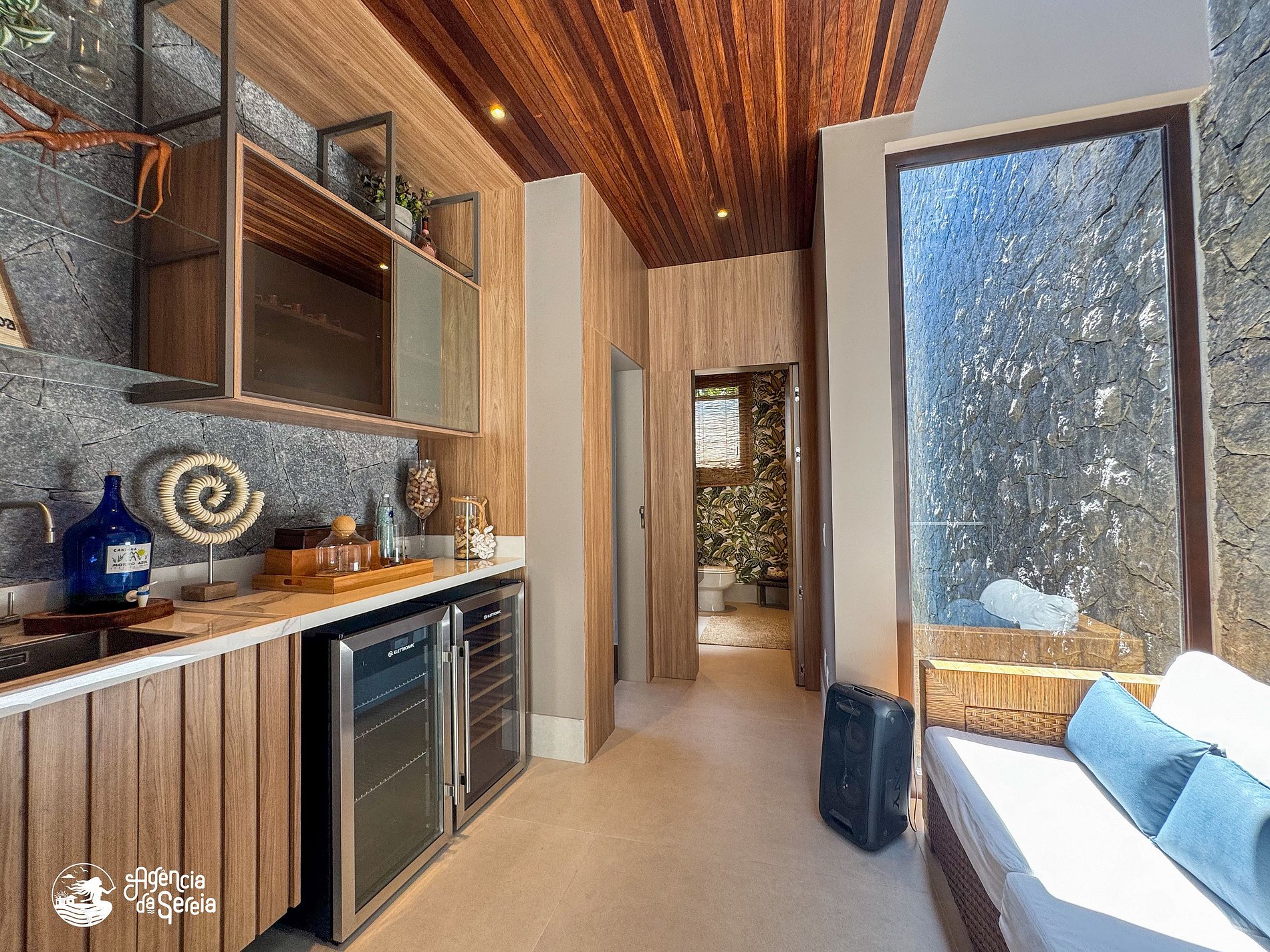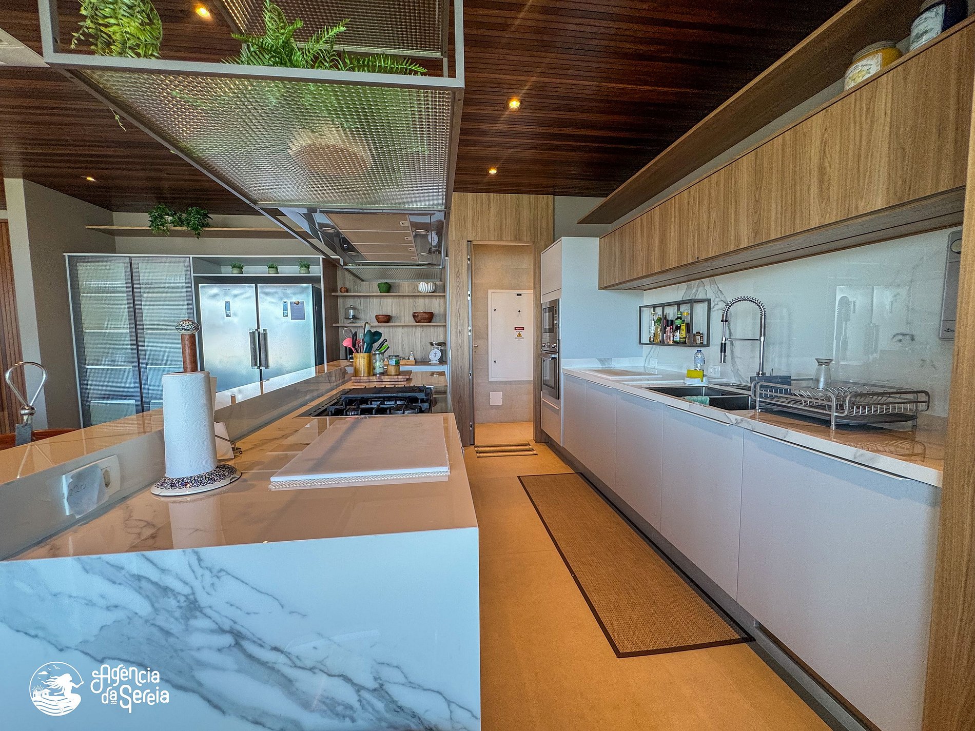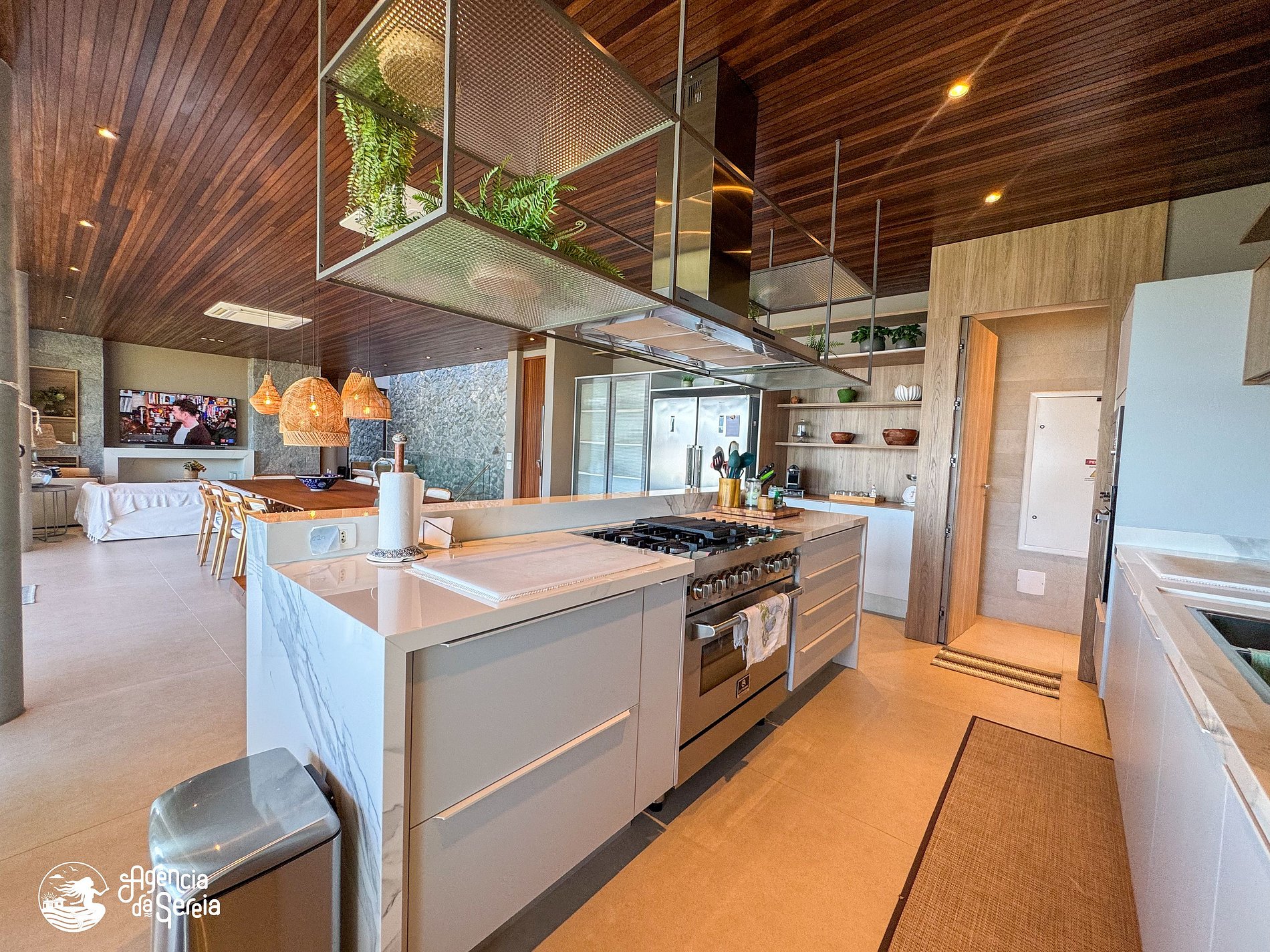 Projetada para integração total, a casa une ambientes sofisticados e aconchegantes: sala ampla com Smart TV de 75”, cozinha completa com eletros de ponta, bar com adega e cervejeira, além de lavanderia equipada. A área externa é um espetáculo: piscina de borda infinita aquecida, sauna, sinuca, espreguiçadeiras, e uma varanda gourmet com churrasqueira e forno de pizza. O cenário perfeito para reunir família e amigos, em que a maioria dos ambientes tem vista para o mar e para as montanhas - incluindo o famoso Pico do Baepi.