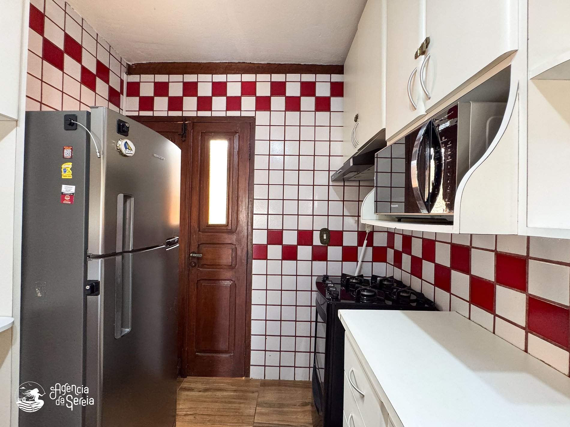 • Cozinha completa e equipada com utensílios, fogão, geladeira e micro-ondas.
