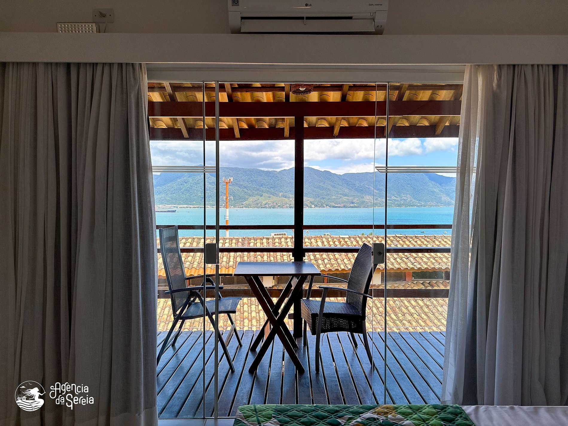 Dispõe de ar-condicionado, frigobar, TV de tela plana com canais a cabo, guarda-roupa e banheiro privativo, além de uma varanda com vista panorâmica.