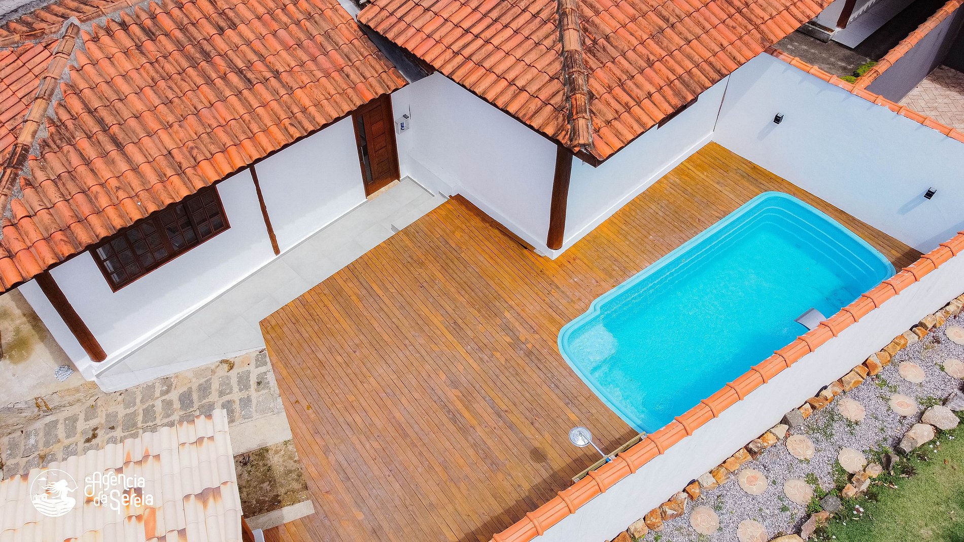 Acomoda até 7 pessoas, sendo: suíte com 1 cama queen e 1 cama de solteiro, com TV de 32 polegadas e ar condicionado; outra suíte com 1 cama de casal, TV e ar condicionado; sala com sofá-cama e TV 43 polegadas; cozinha toda equipada; banheiro. A casa ainda conta com área de lazer ampla com deck, piscina, churrasqueira e garagem para 1 carro.