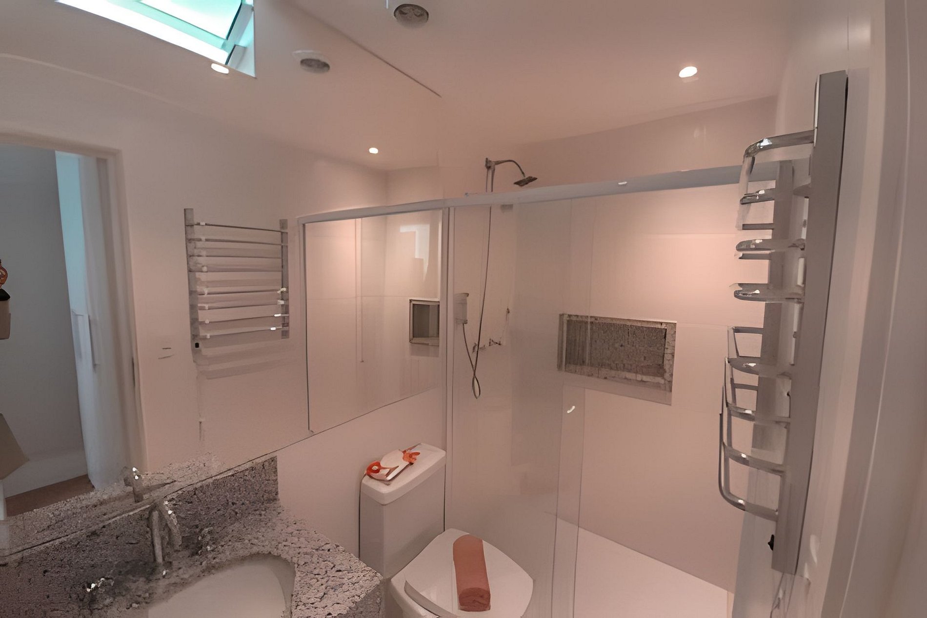 Hóspede tem acesso em todas as áreas comum do condomínio, sendo: - piscina olímpica -piscina aquecida -sauna -sala de massagem -academia completa -salão de jogos -brinquedoteca -horta comunitária -jardim de inverno - playground -wistblock - sala de snooker