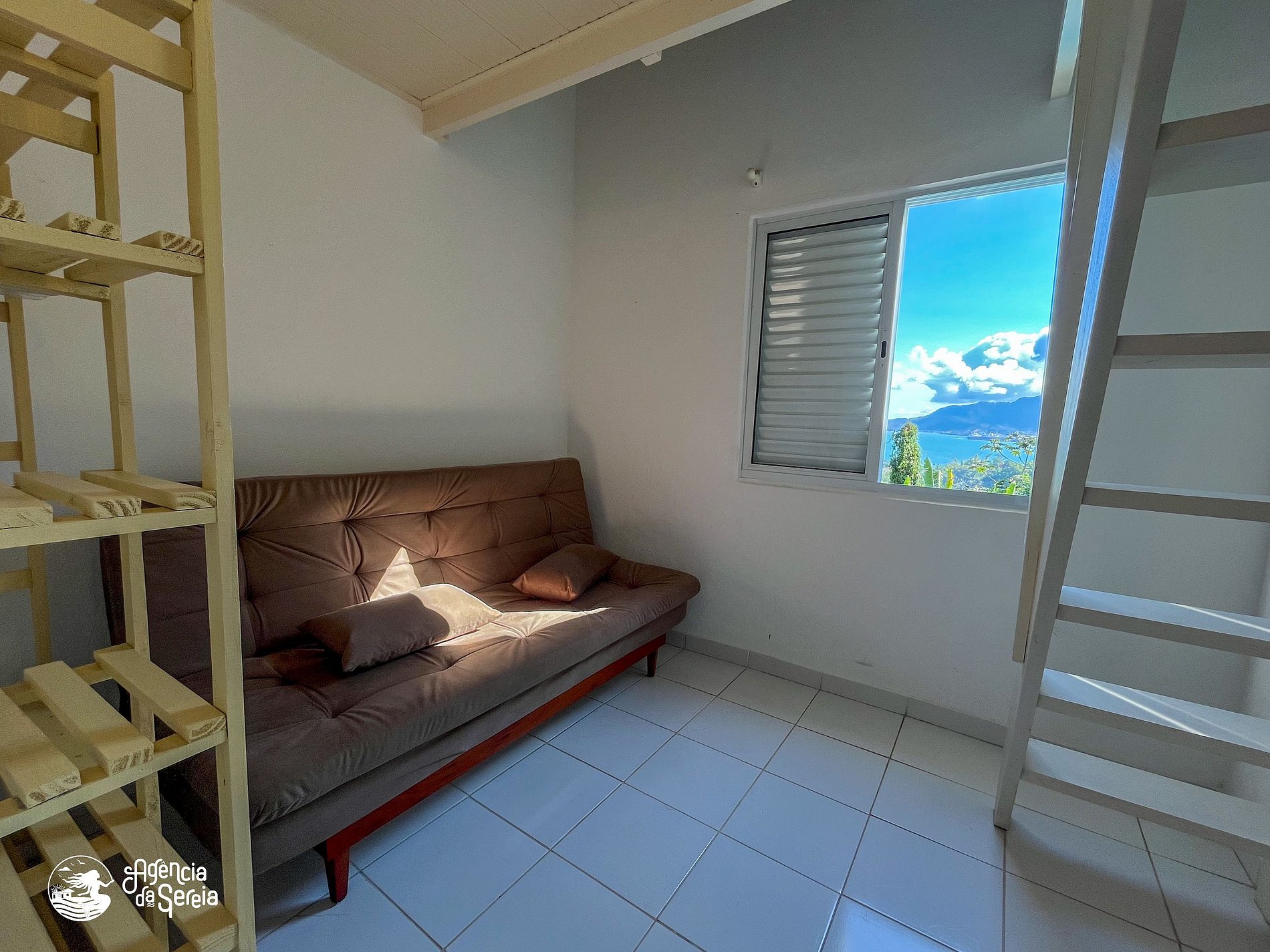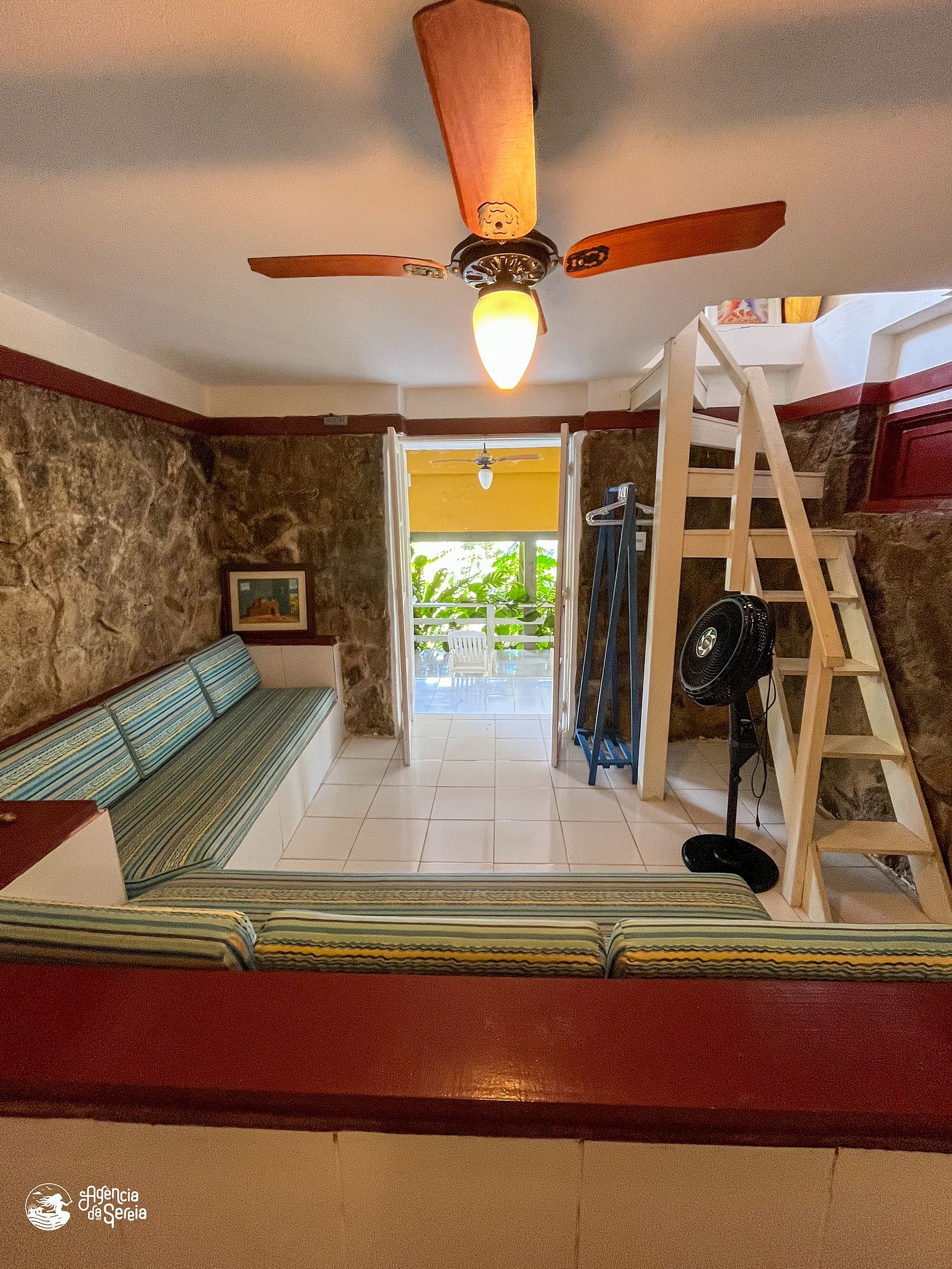 • Quarto: Sofá-cama + um colchão de casal no mezanino e ventilador de teto.