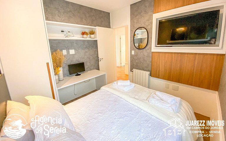 Lindo Flat localizado no coração do Capivari, ideal para quem quer um final de semana cheio de requinte. Muito bem decorado, possui uma suíte com cama de casal, 2 dormitórios com cama de casal e 1 dormitório com 2 camas de solteiro. Todos com TV e roupa de cama. Sala de estar aconchegante, sala de jantar integrada à área gourmet com TV a cabo, churrasqueira e forno de pizza. Wi-fi de 100 megas para ficar conectado o tempo todo! Cozinha completa com lava-louças, cook top e geladeira.