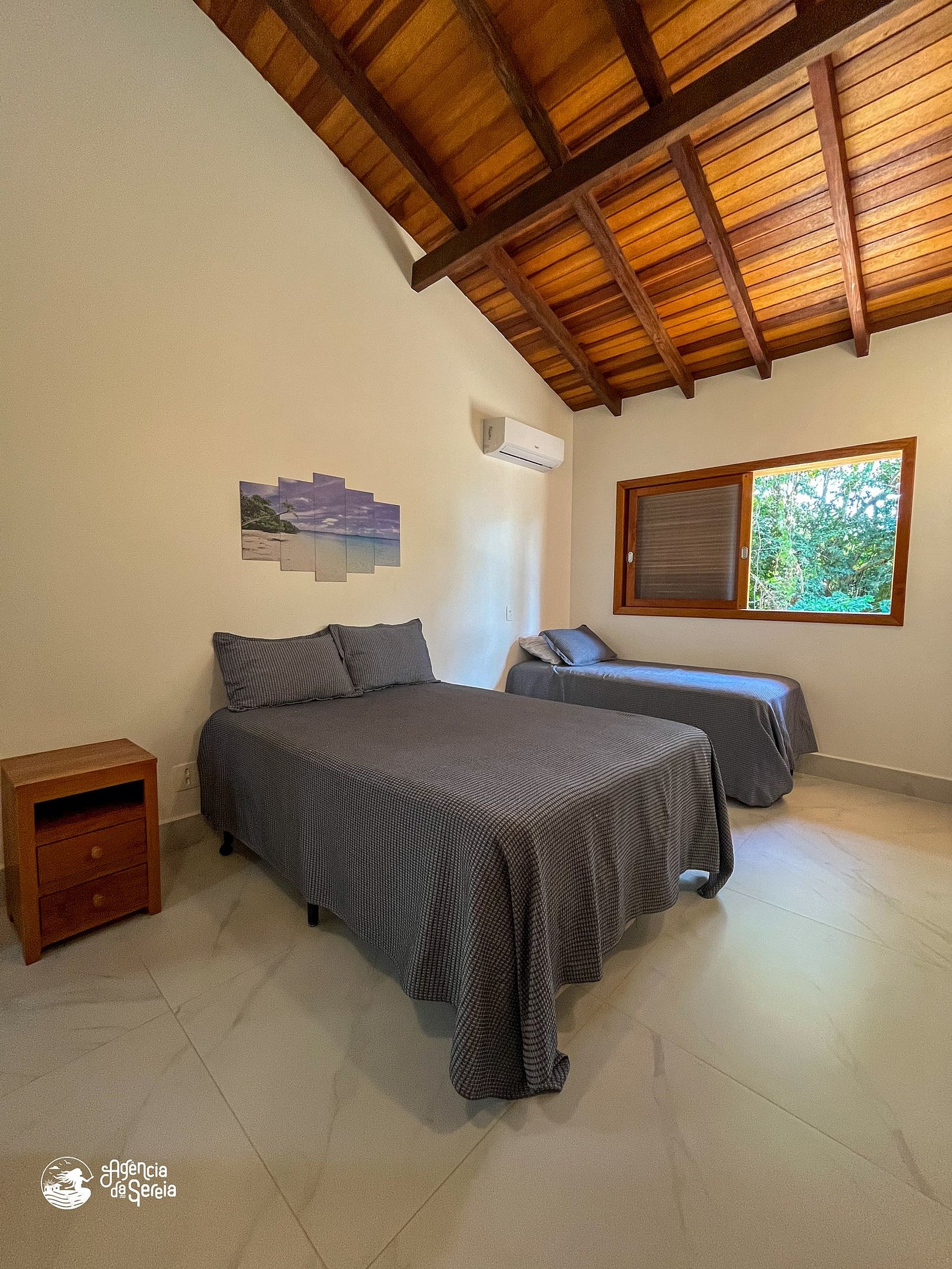 Ouça o canto dos pássaros, sinta a brisa do mar e deixe-se encantar pela beleza da Mata Atlântica na sua próxima visita à Ilhabela! A Agência da Sereia te convida para uma experiência inesquecível: para esta casa dentro de um condomínio no sul da Ilha, com piscina compartilhada e a poucos metros da Praia das Conchas e de frente para o restaurante Bens Comidaria. Casa aconchegante com varanda e churrasqueira integradas, onde você recebe a visita de maritacas, tucanos e outros pássaros.