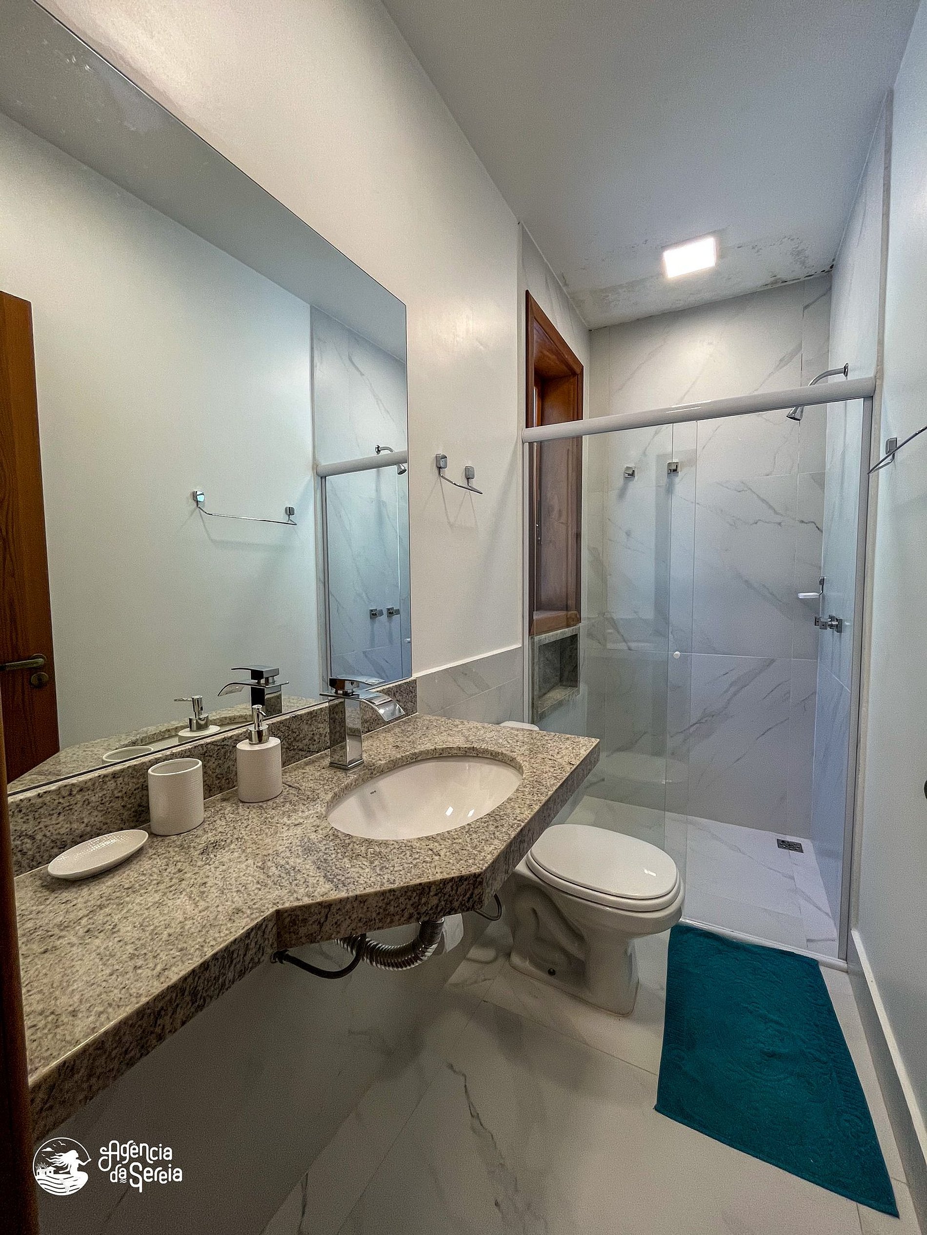 O imóvel fica em um condomínio, por isso, as áreas comuns são compartilhadas com outras casas, bem como a piscina do condomínio e espreguiçadeiras.