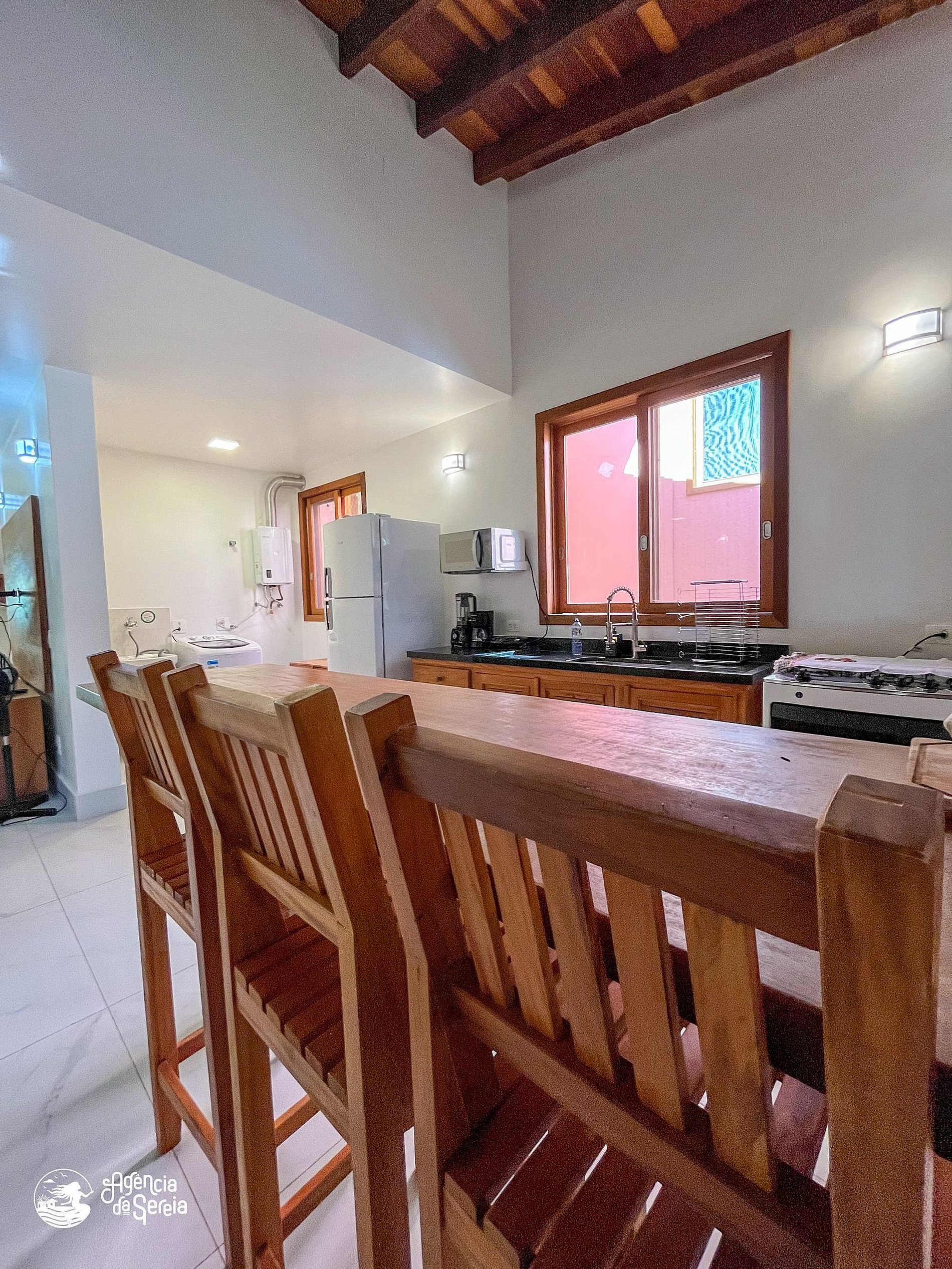 A casa fica a poucos metros da Praia das Conchas e a apenas dez minutos de carro das praias do Curral e do Veloso.