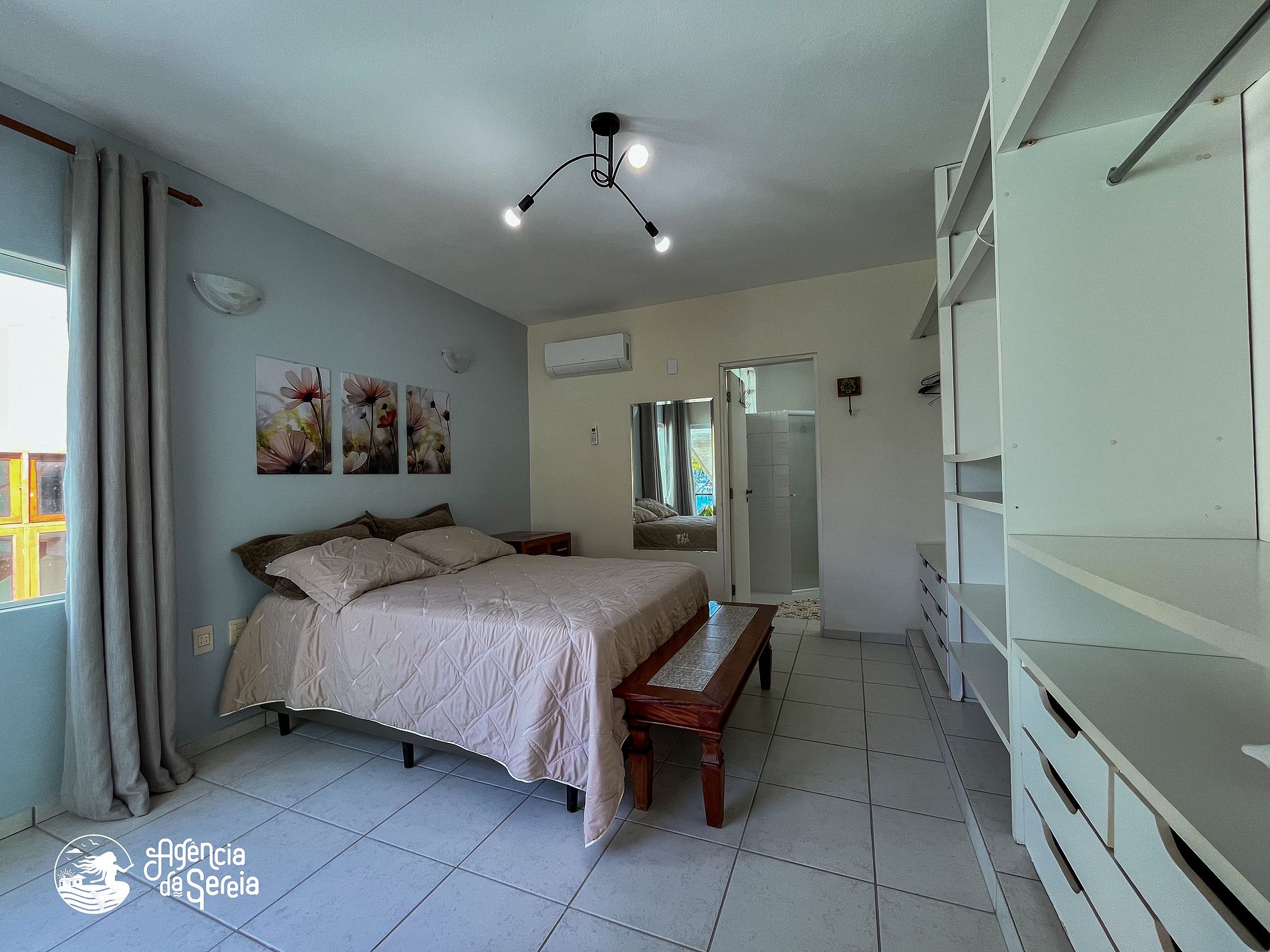 Sobre as 4 suítes: 3 delas ficam no segundo andar, sendo uma suíte master com closet e banheira e uma varandinha com rede, uma suíte com varanda com vista, uma com vista parcial para o mar e uma na parte térrea para pessoas com menor mobilidade. A churrasqueira é coberta, para que nada impeça você de viver momentos inesquecíveis