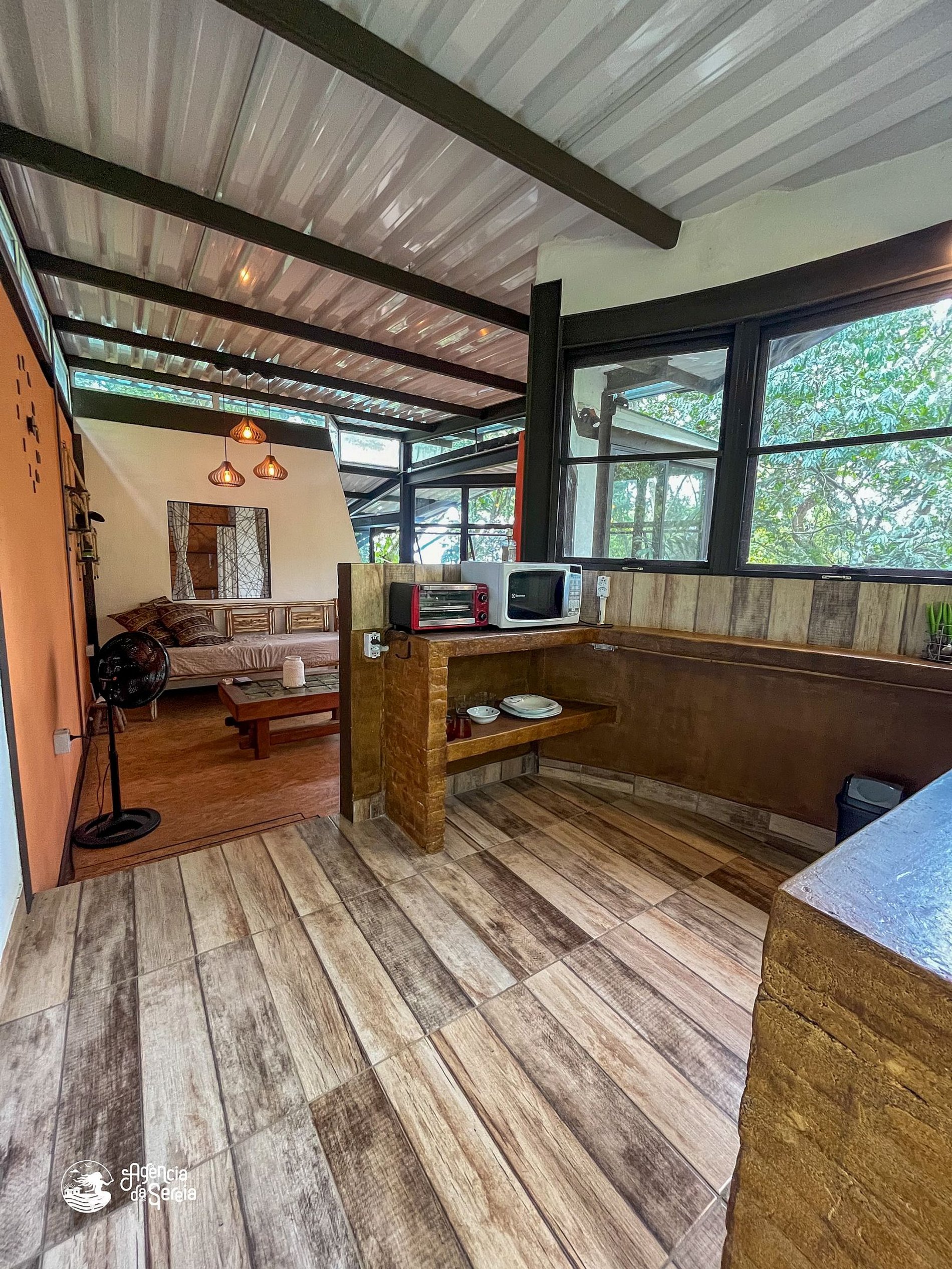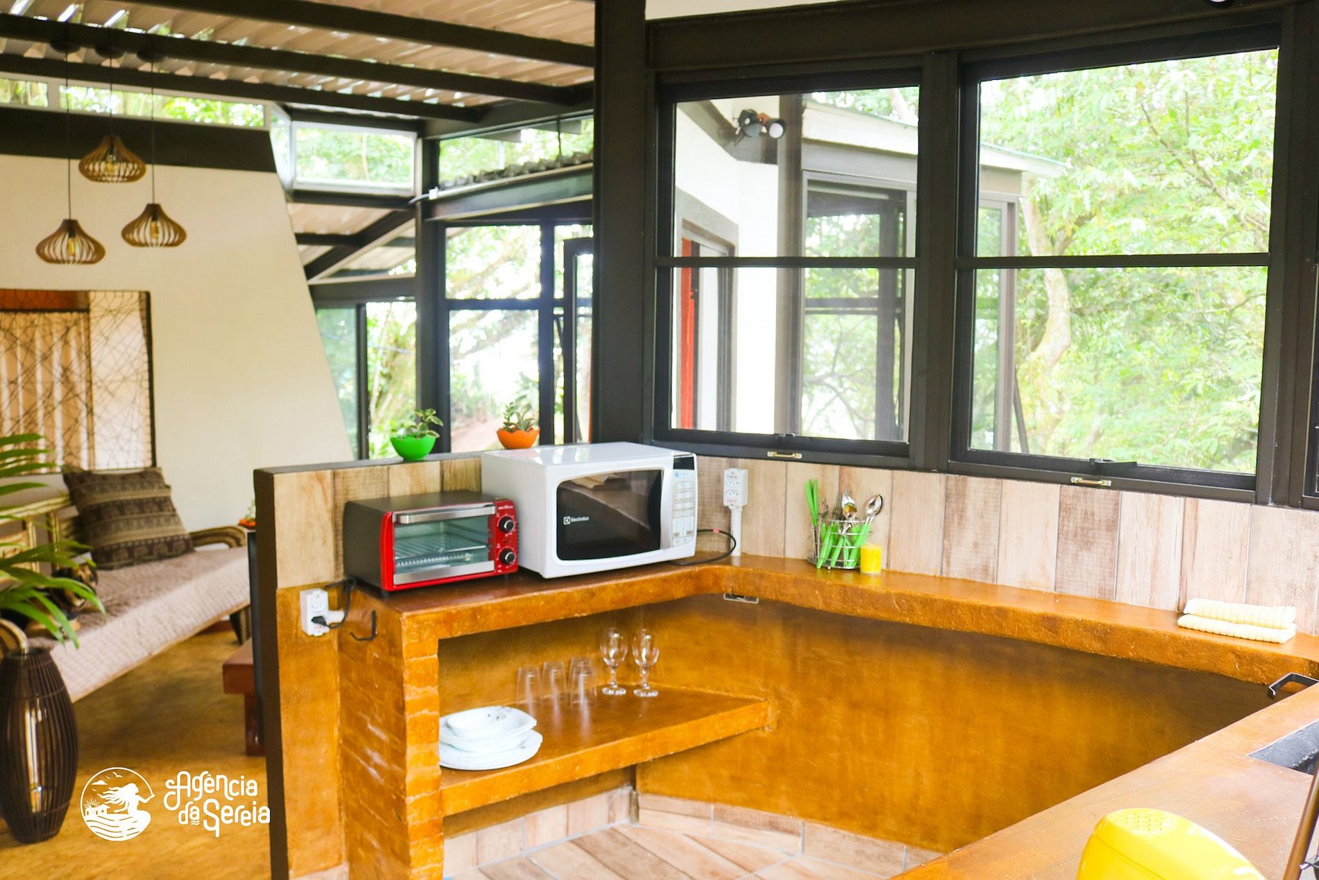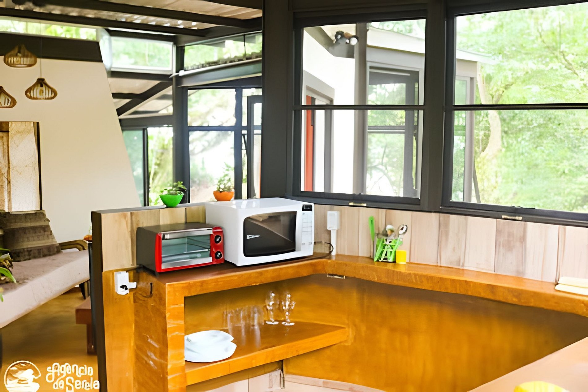 A acomodação é completa, com Wi-Fi, frigobar, fogão elétrico de duas bocas e utensílios básicos para pequenas refeições, SmartTV, chuveiro elétrico e gerador próprio para garantir seu conforto a qualquer hora.