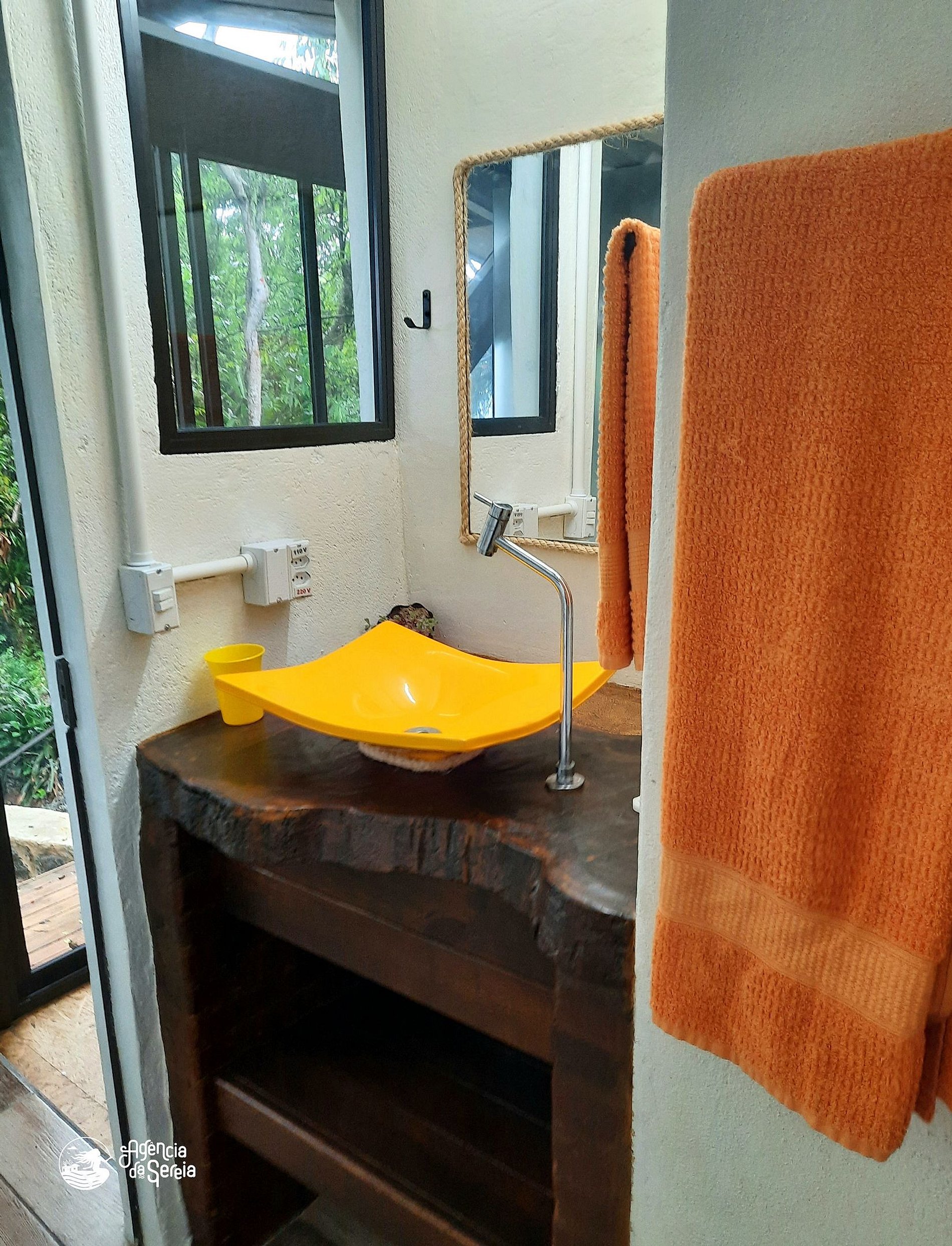 O que te espera: Desfrute de um espaço exclusivo com entrada privativa, mini piscina natural e envolto de muita natureza, perfeito para admirar a flora e fauna local e relaxar em meio às árvores frutíferas e flores do nosso jardim.