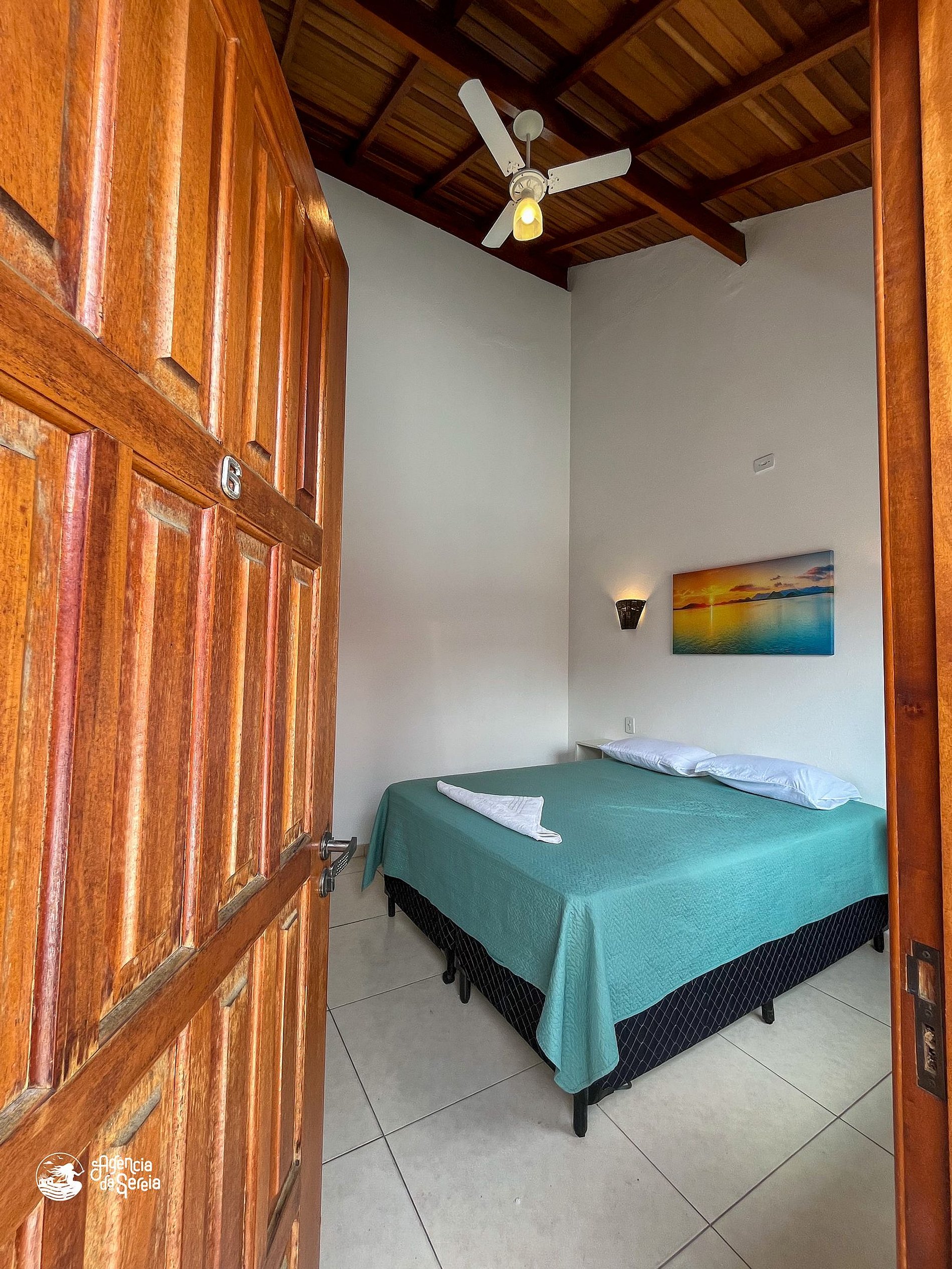 Cama confortável, com roupas de cama e banho inclusas, a praticidade de um frigobar e microondas na suíte, Wi-fi, ar condicionado e ventilador.