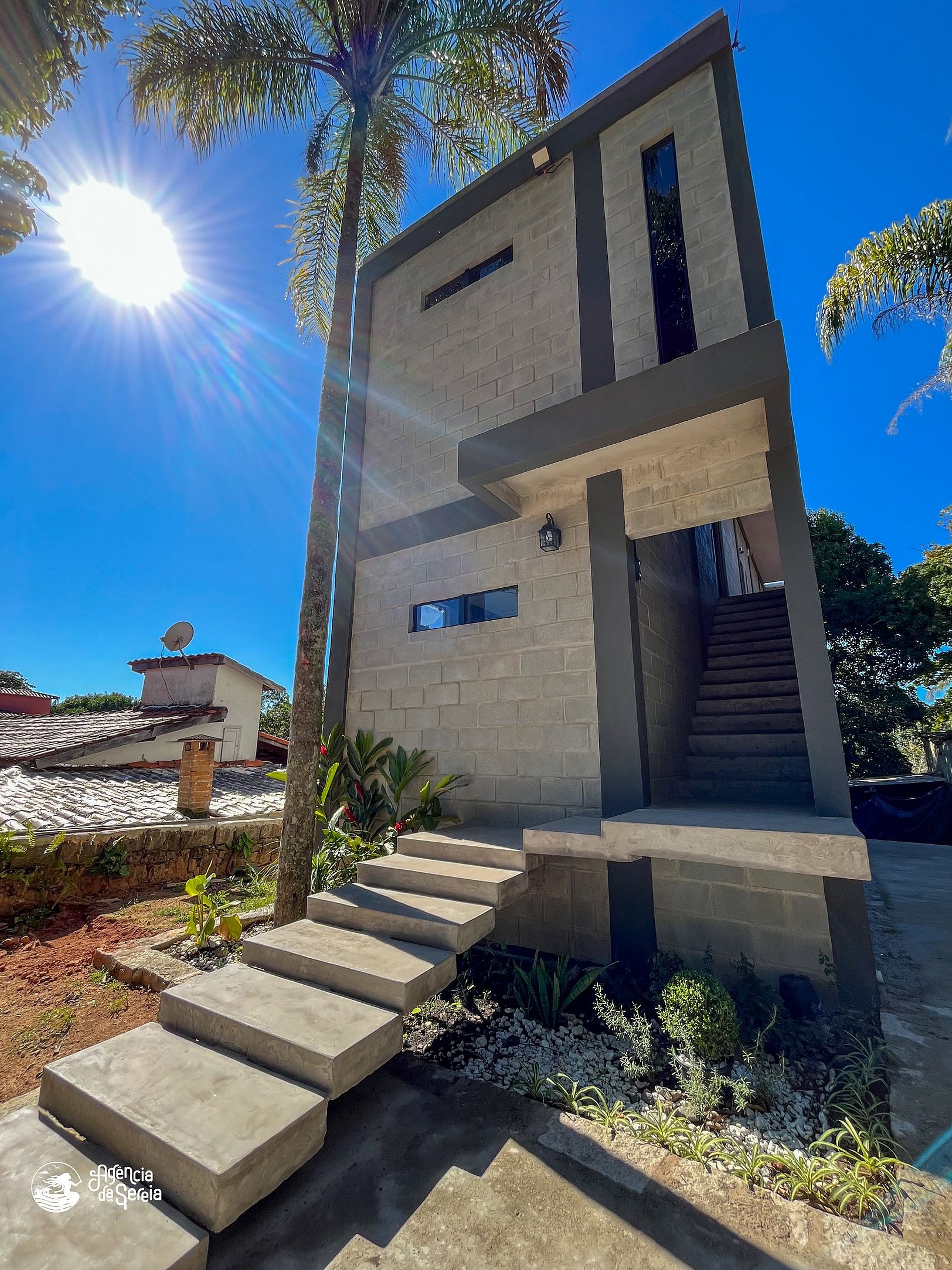 O complexo conta com 3 lofts no total, sendo 1 vaga de garagem por loft. O acesso para as acomodações contém escada, pois todas ficam no andar de cima.